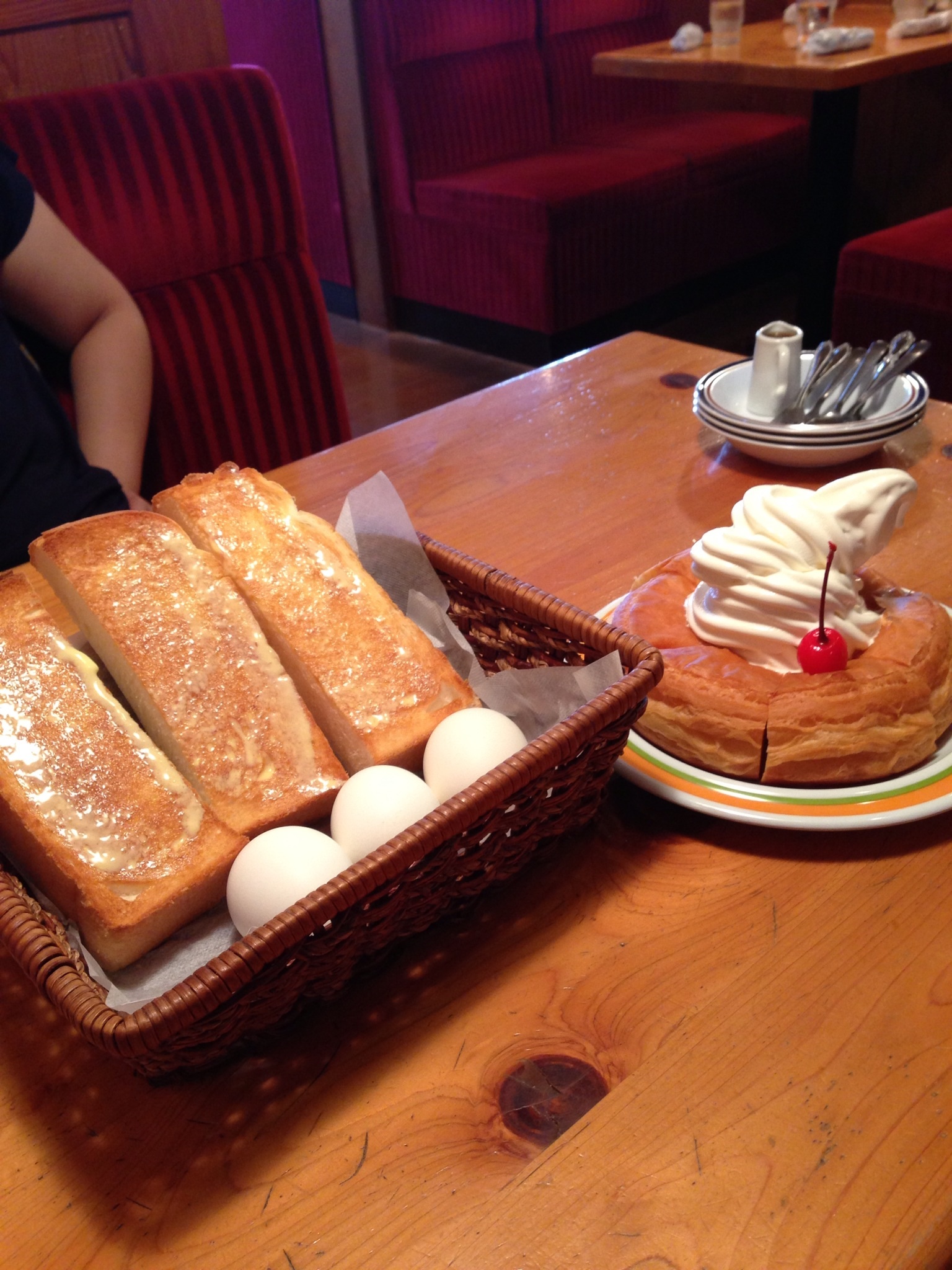 愛知っぽいものをということで、コメダのモーニングとシロノワール食べに行きました。